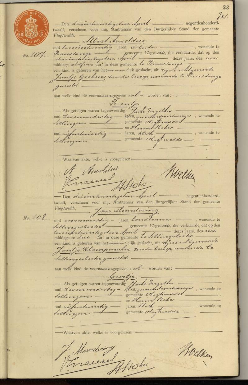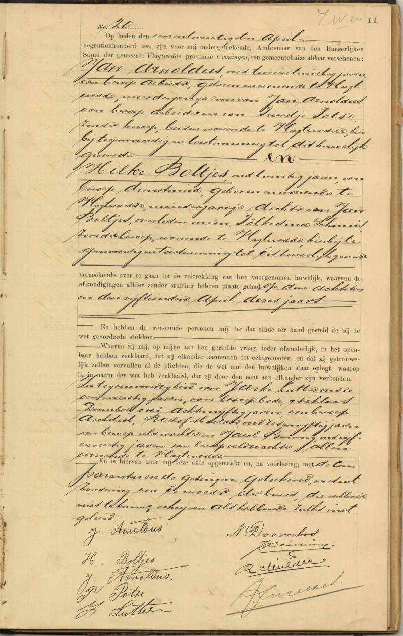 Trouwakte Jan Arnoldus (1884) x Hilke Boltjes